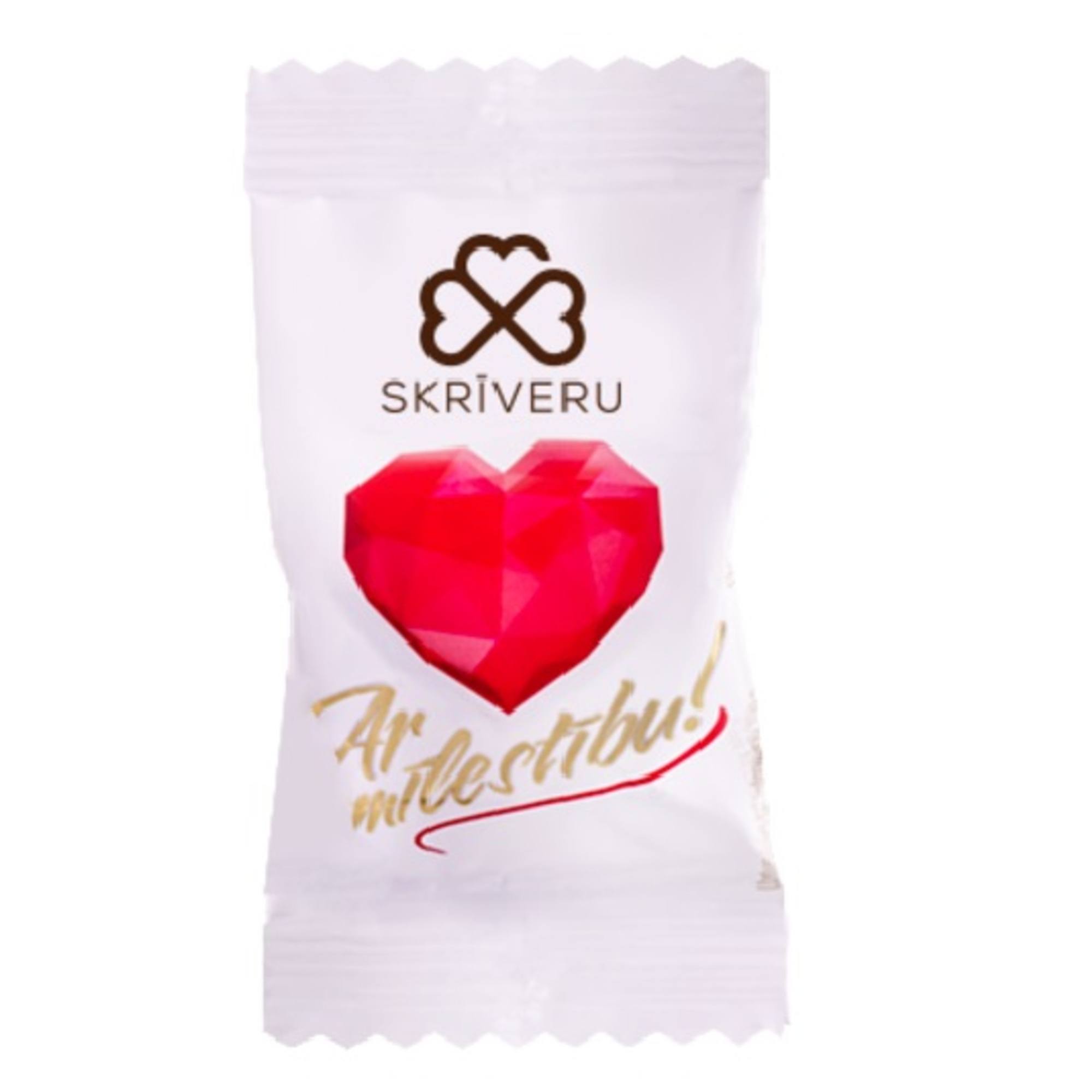 • Konfektes sirds formā, katra iepakota atsevišķi.