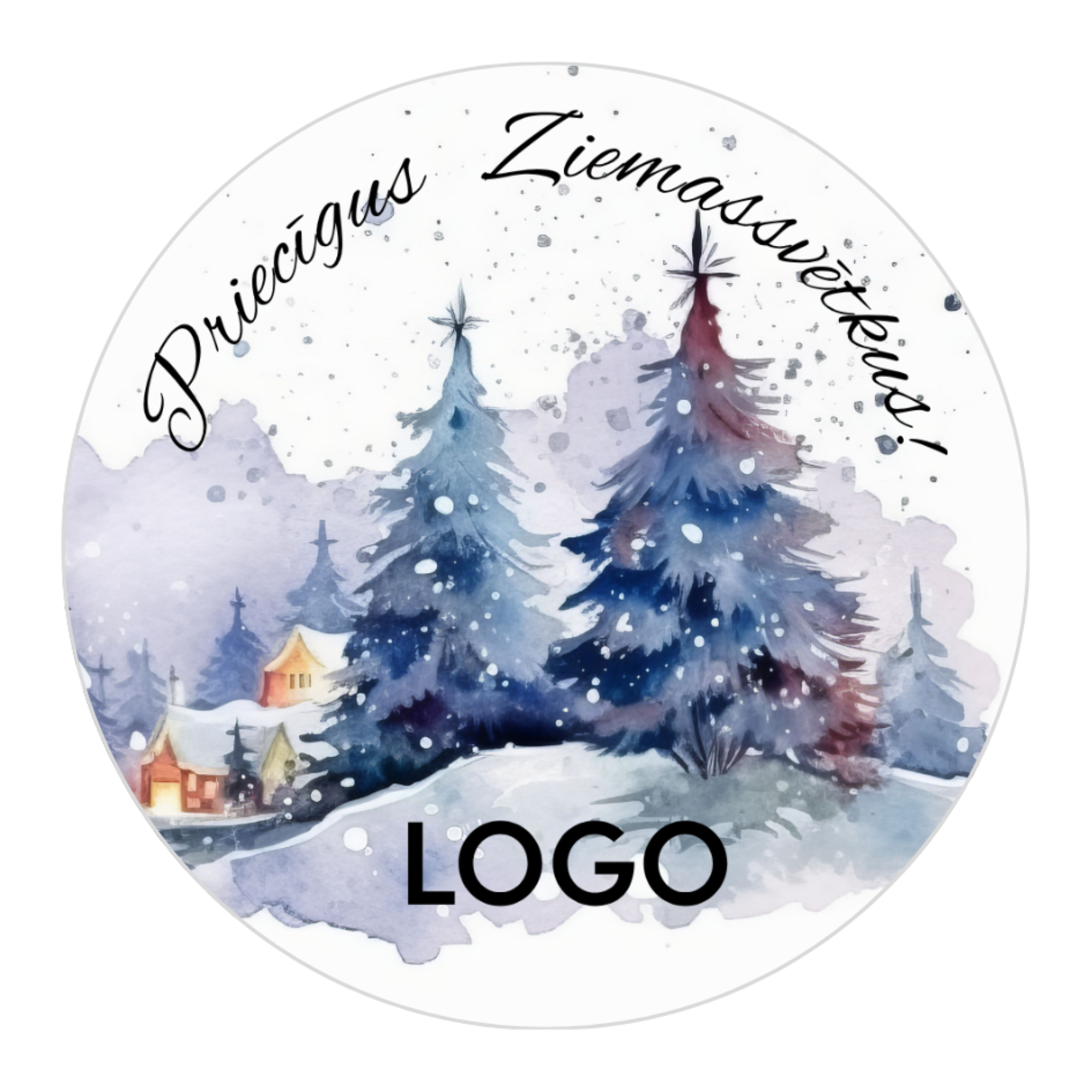 Uzlīmes, apaļas ar klienta logo, Ziemassvētku rīts, 80mm