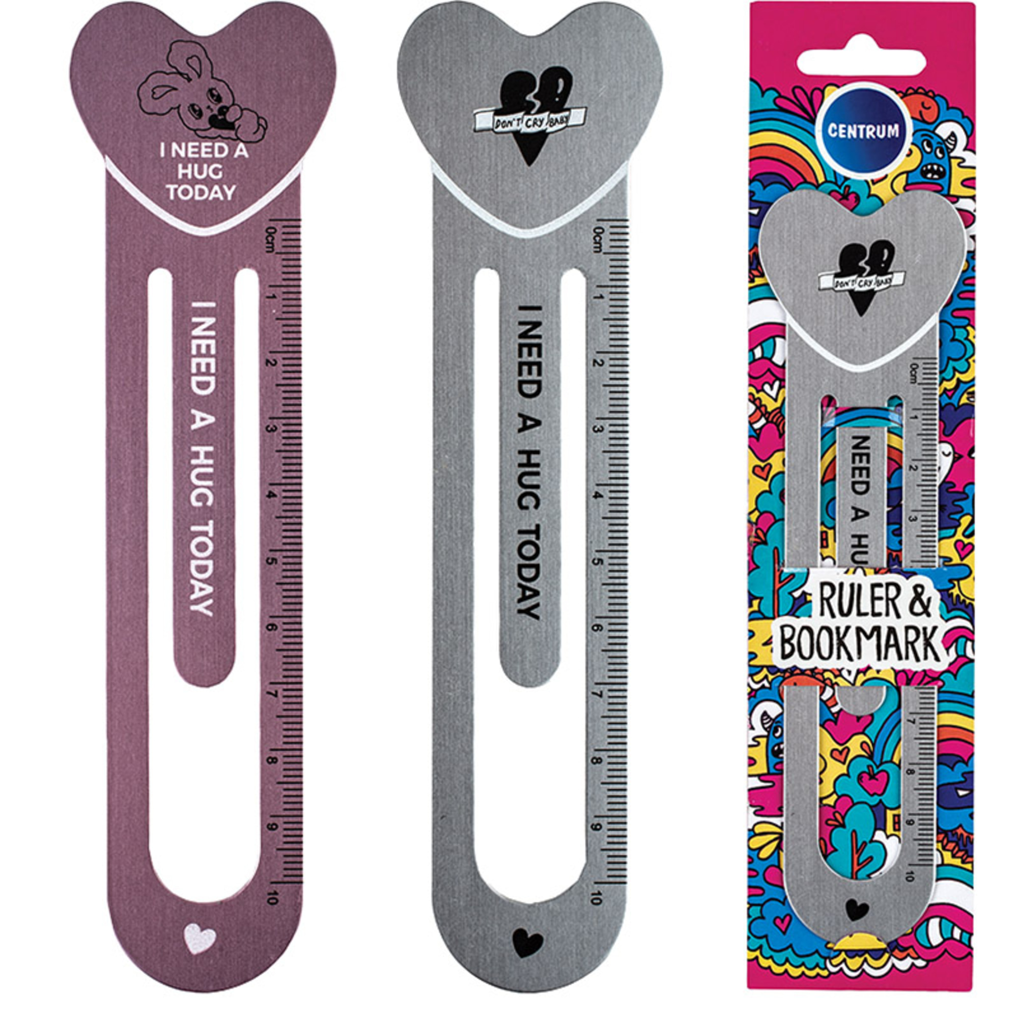 Lineāls-grāmatzīme, 10 cm, metāla, asorti, Centrum