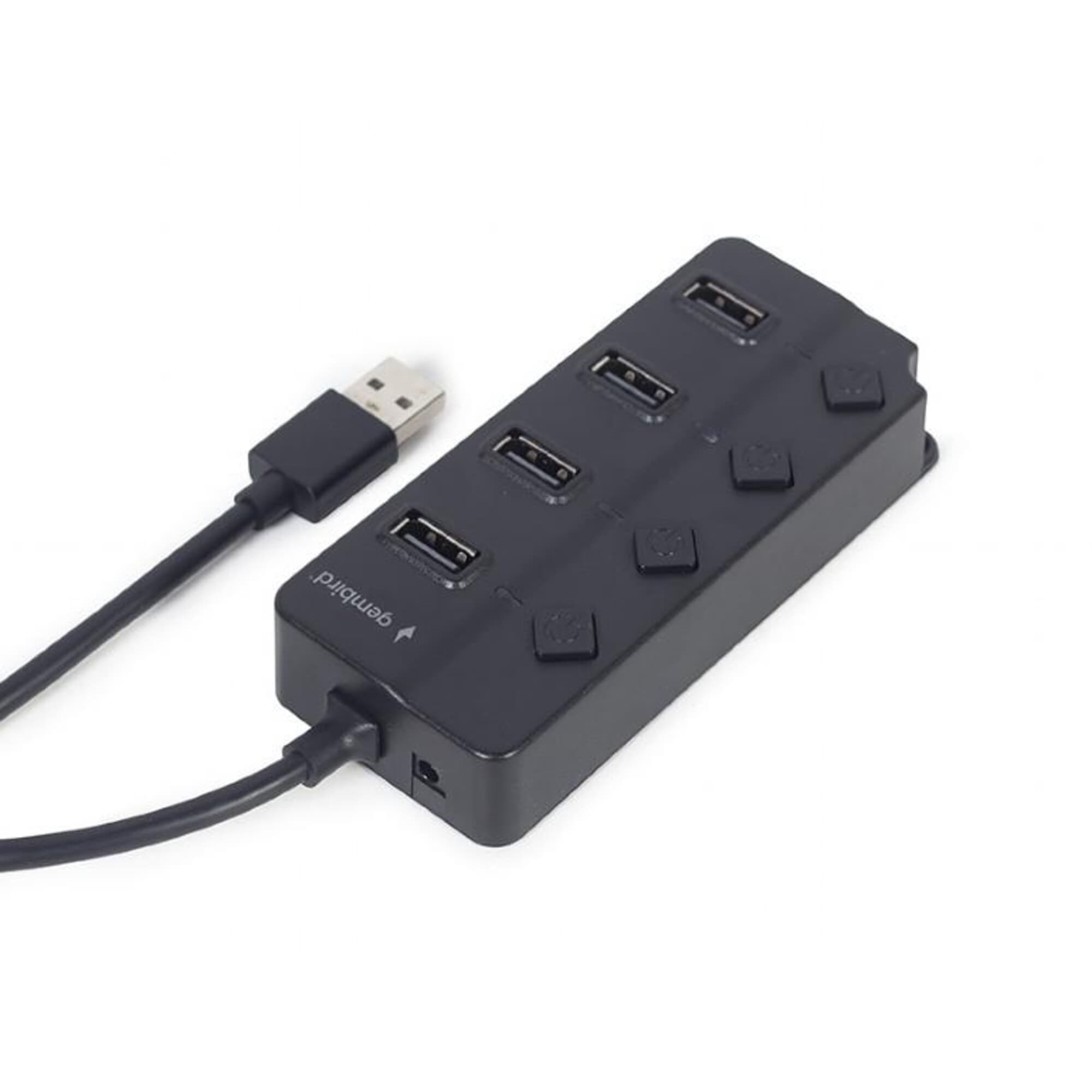 USB Hub Gembird USB-A - 4xUSB-A 2.0, 80 cm, melns, ar slēdžiem