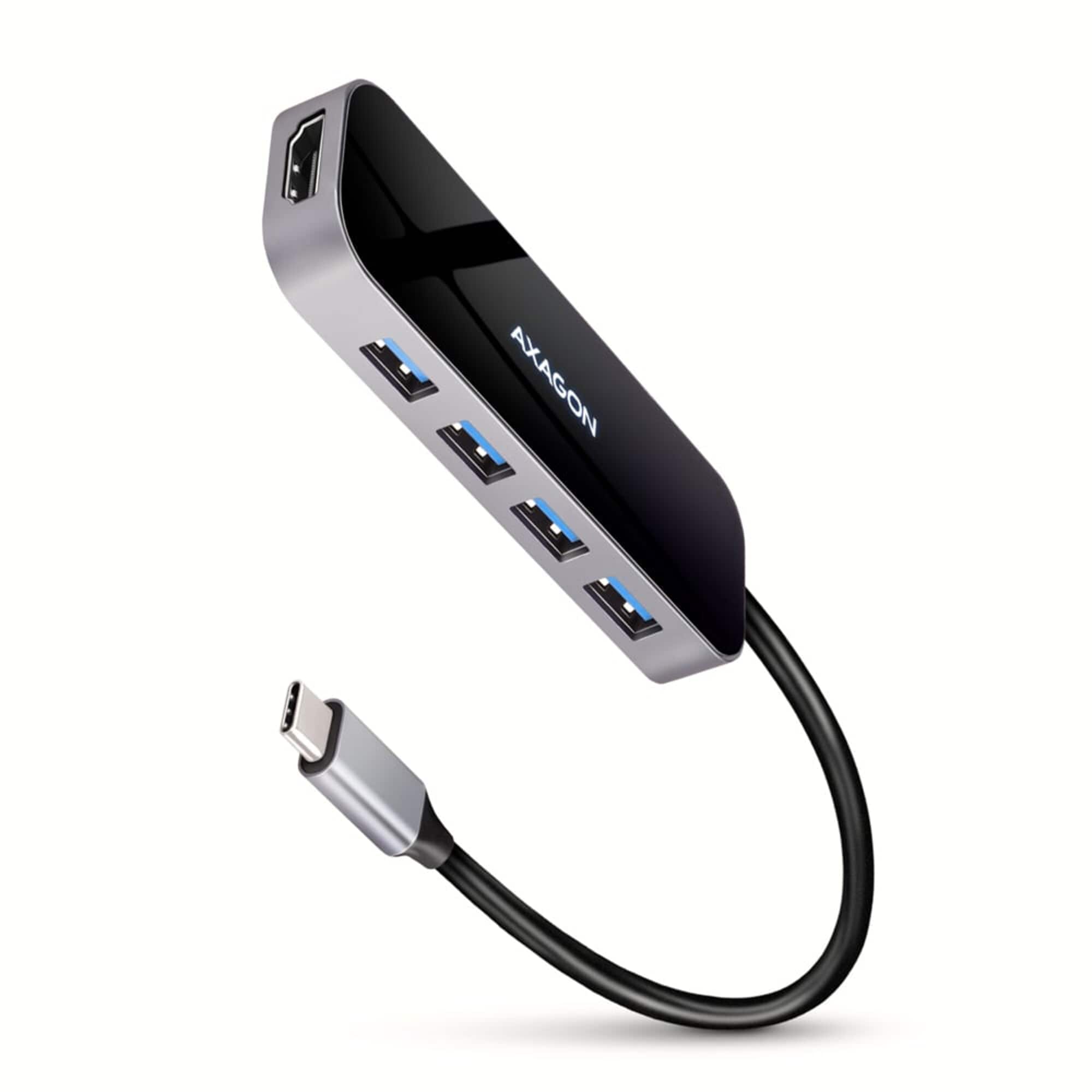 Dokstacija Axagon HMC-6H4A USB-C, 6in1, 20 cm, melna