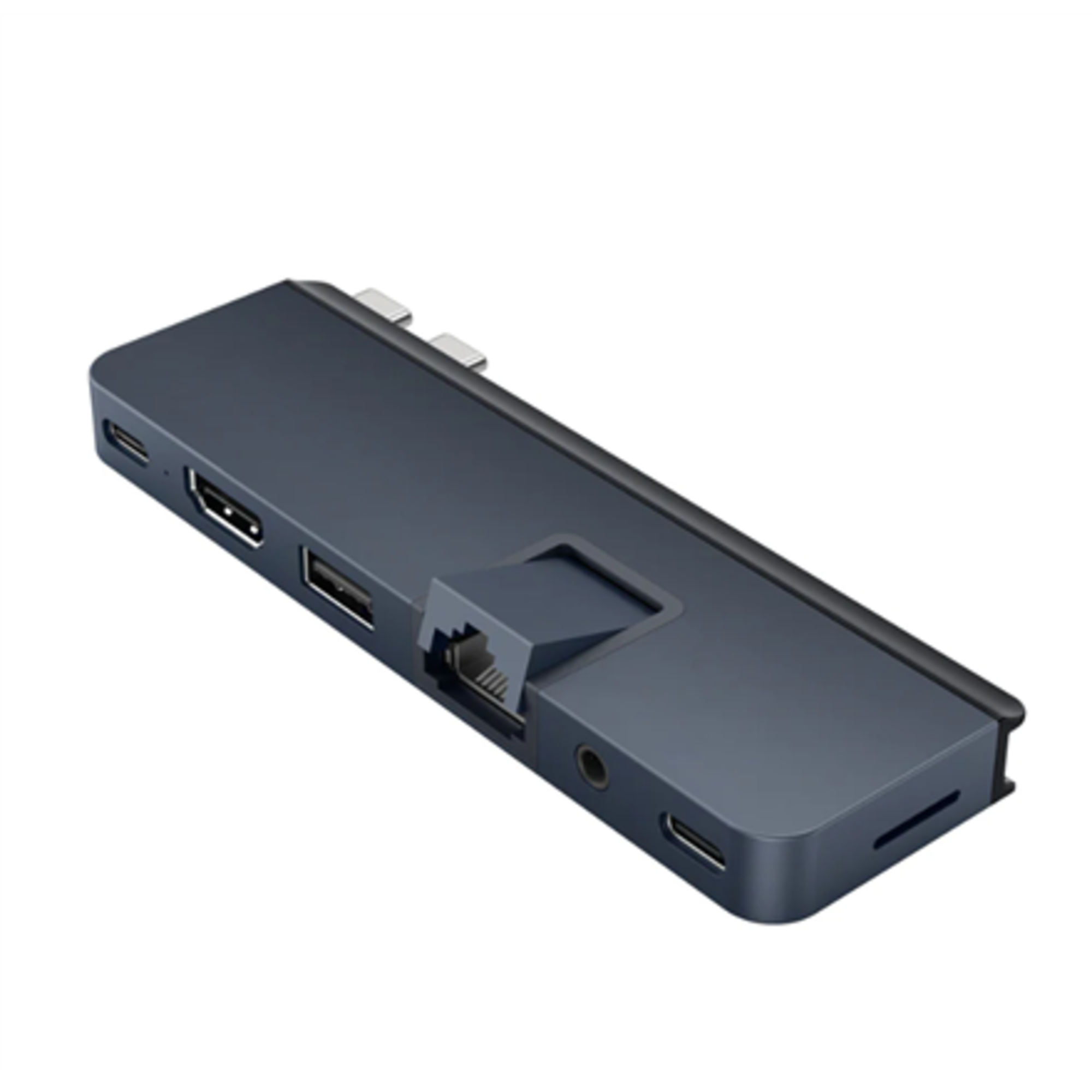 - Šis pielāgotais centrmezgls acumirklī nodrošina Gigabit Ethernet, USB-A 5 Gbps, USB-C 5 Gbps, MicroSD 104 MB/s un 3,5 mm audio kombinēto ligzdu.