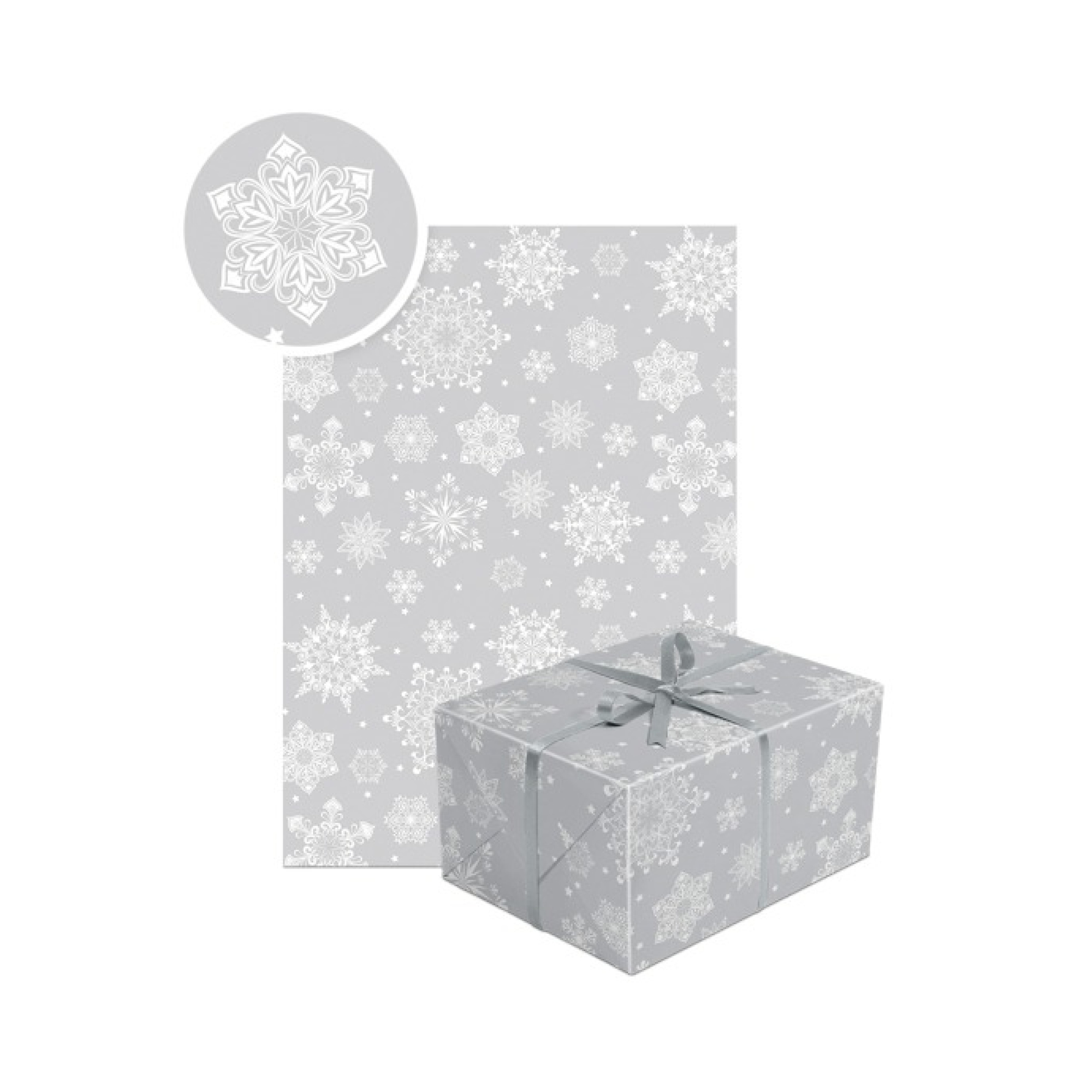 Dāvanu saiņošanas papīrs, sudraba ar sniegpārsliņām, 2m