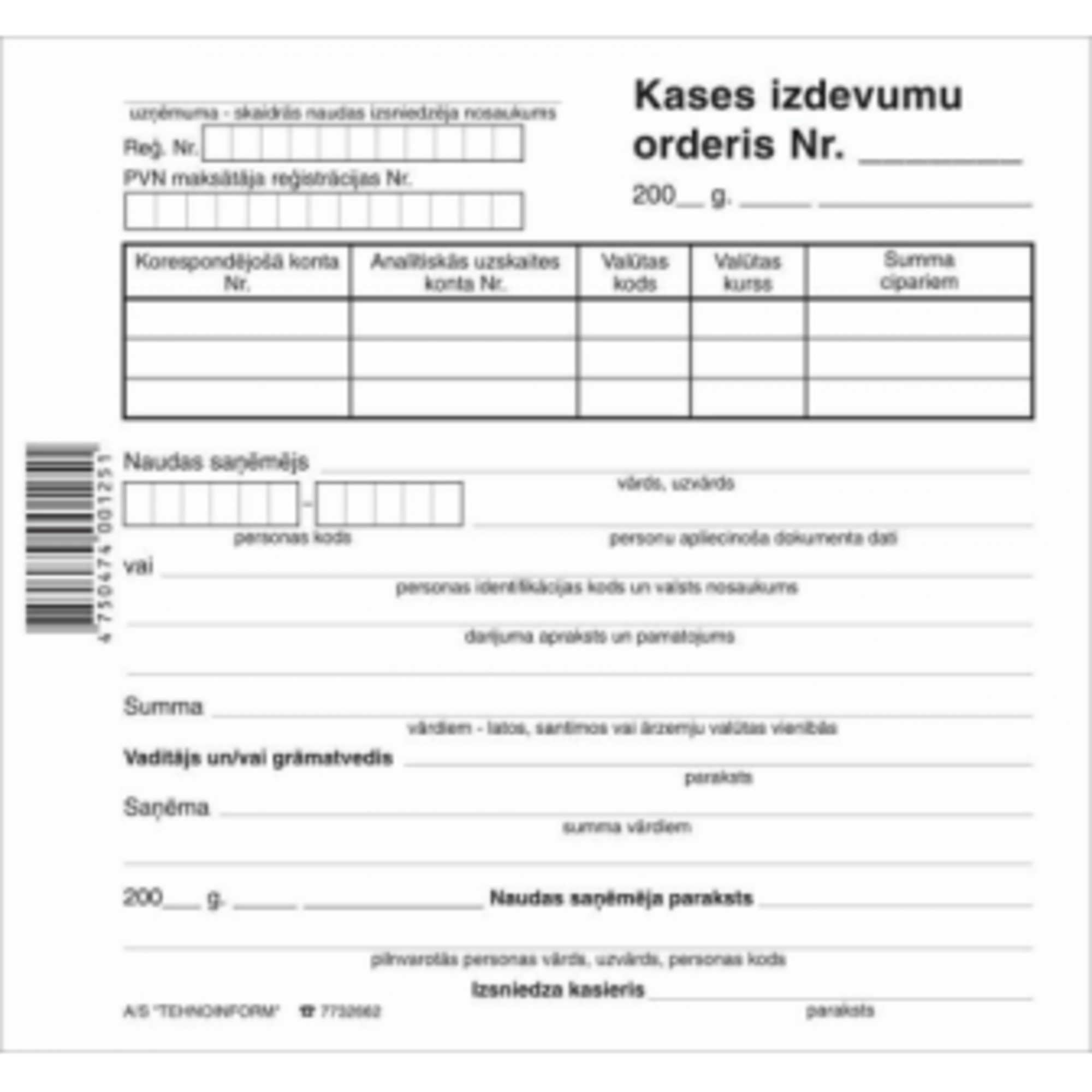• Kases izdevumu orderis.