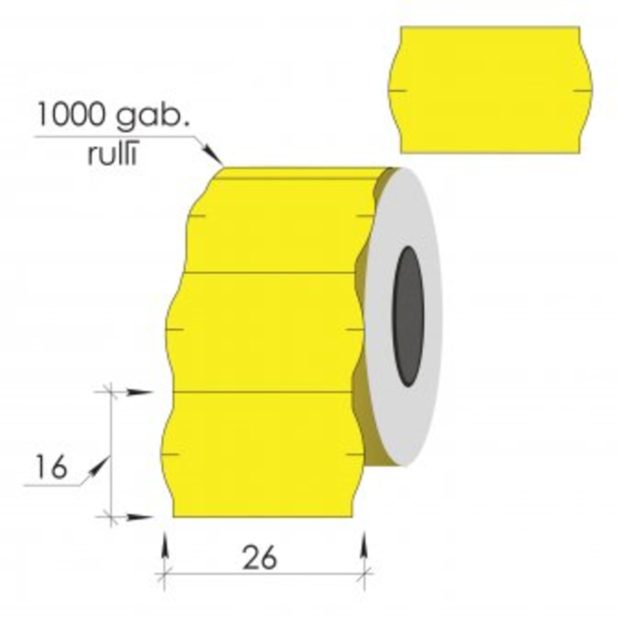 Uzlīmes marķēšanas pistolei 26x16 mm, dzeltenas, 1000gab.
