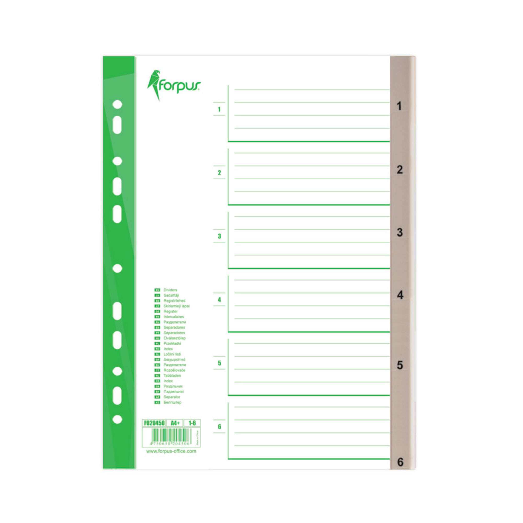 Dokumentu atdalītāji, 1-6, A4+, Forpus