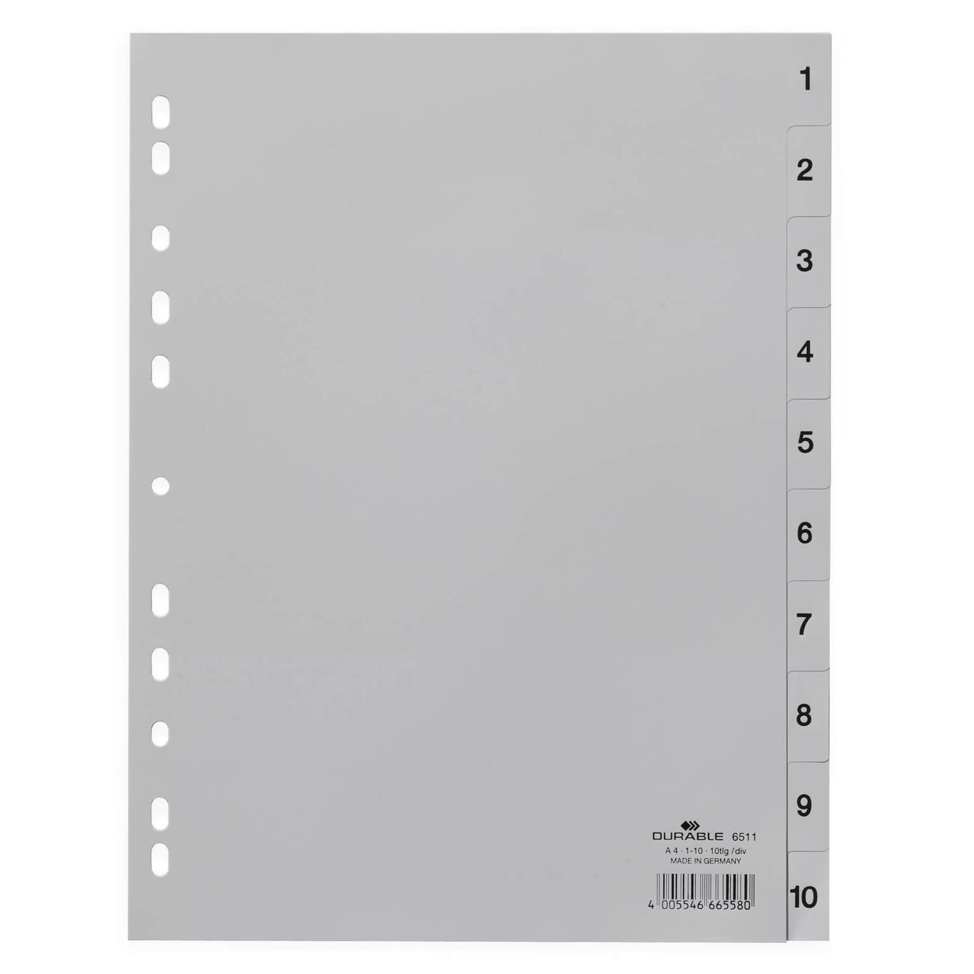 • A4 formāta dokumentu atdalītāji no 1 līdz 10, Durable.