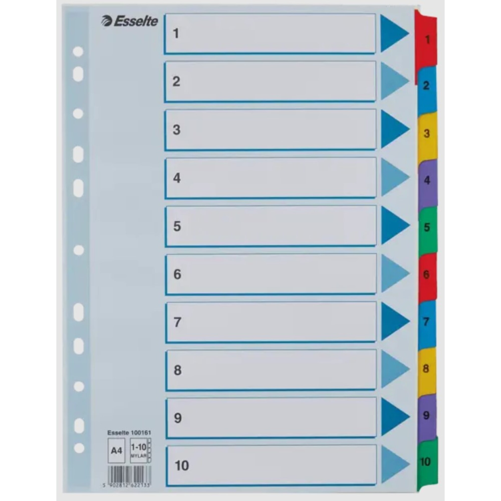 Dokumentu atdalītāji, 1-10, A4, kartona, laminēti, Esselte