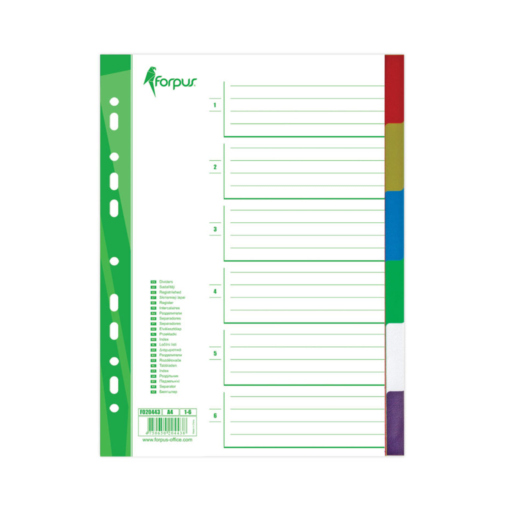 Dokumentu atdalītāji, 1-6, A4, Forpus
